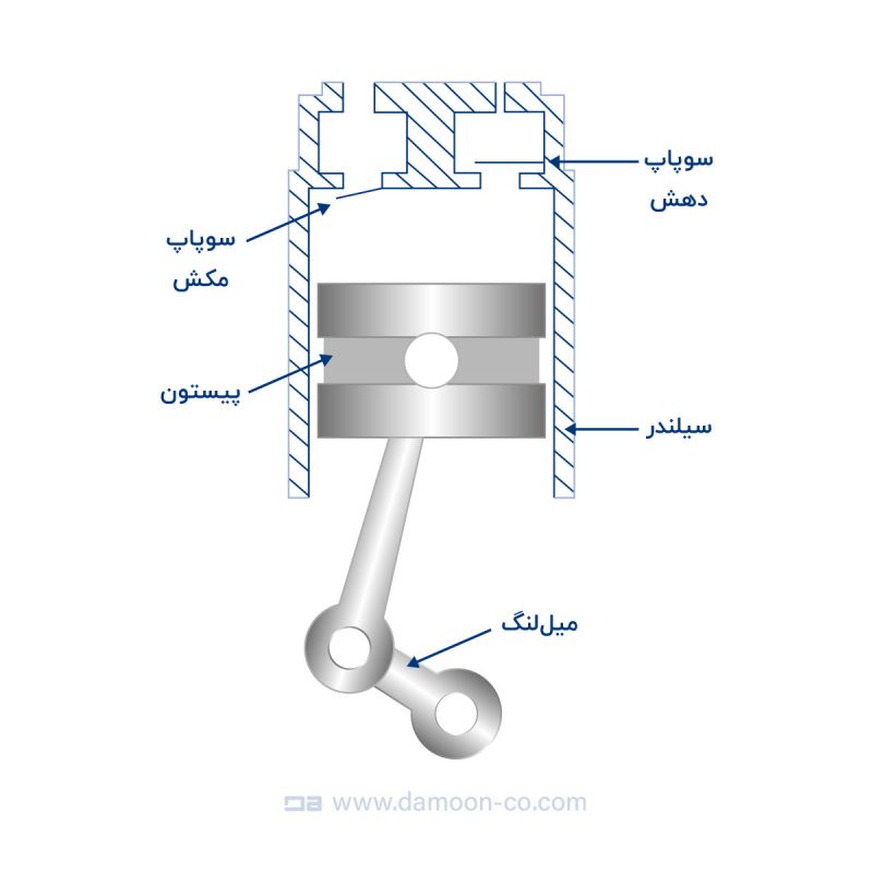 تراکم گاز در کمپرسورهای پیستونی به وسیله کارکرد اجزایی انجام میگیرد که در ادامه شرح خواهیم داد: